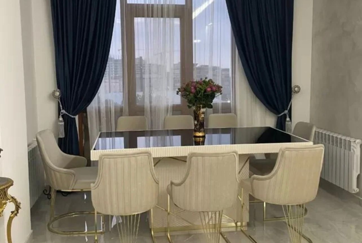 Sales of a four-room apartment in a dream apartment complex. The apartment is renovated in a designer style. It has been inhabited for 3 months, 3 bedrooms, 2 bedrooms, 3 open packages, sold along with all the furniture and technology, and a garage on a zero floor, and will be sold for an additional fee if desired.