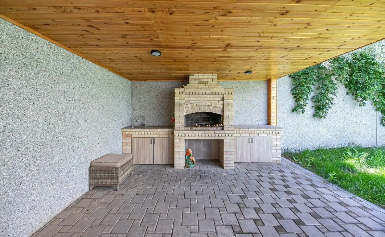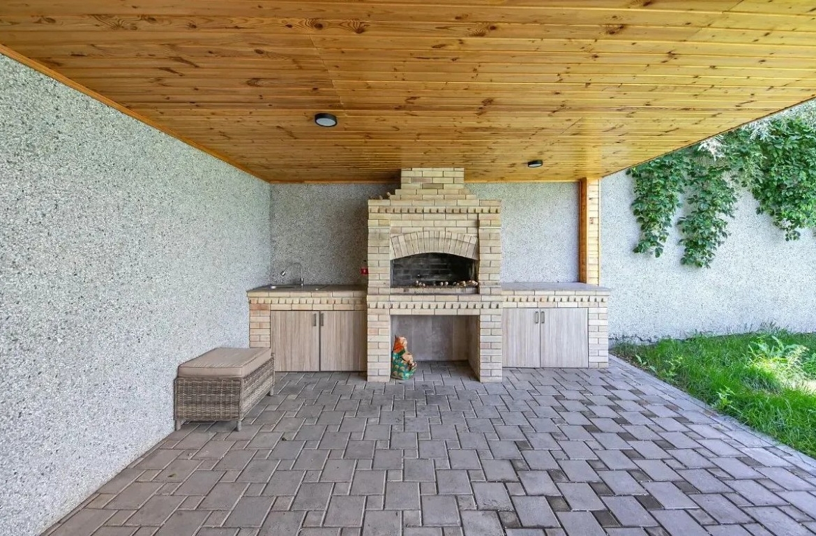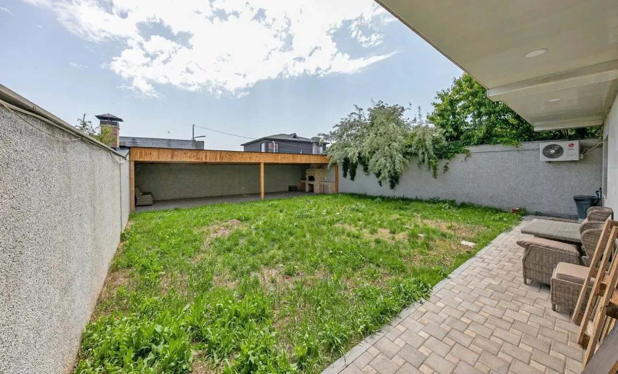 حیاط محصور با دیوار است، دارای فضای نشیمن تابستانی و حیاطی مرتب و رسیدگیشده.